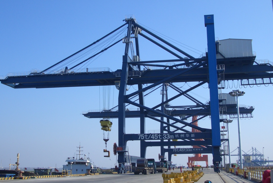 公司于1990年成功研發(fā)公司首臺臺四卷筒牽引式卸船機試驗機,在上海吳涇熱電廠投入使用,1993年1臺600t/h機房下置的四卷筒牽引式卸船機在華能威海電廠投入使用,至今已運行近30年,設備情況良好。經(jīng)過不斷地發(fā)展,不斷地積累經(jīng)驗,不斷地研發(fā)創(chuàng)新,華新機電生產制造的卸船機技術在不斷地升級,產品系列從200t/h~2400 t/h,目前生產制造過的生產率最大卸船機為馬來西來亞TJB2400t/h項目,具備設計制造2500~3500t/h卸船機的能力。產品廣泛應用于電力、冶金、建材、港口、散貨碼頭等行業(yè),在“一帶一路”的偉大創(chuàng)舉下,產品陸續(xù)出口印尼、馬來、菲律賓、新加坡、越南等東南亞國家以及西亞、中東、南美、非洲等地區(qū),產品遍及國內外。